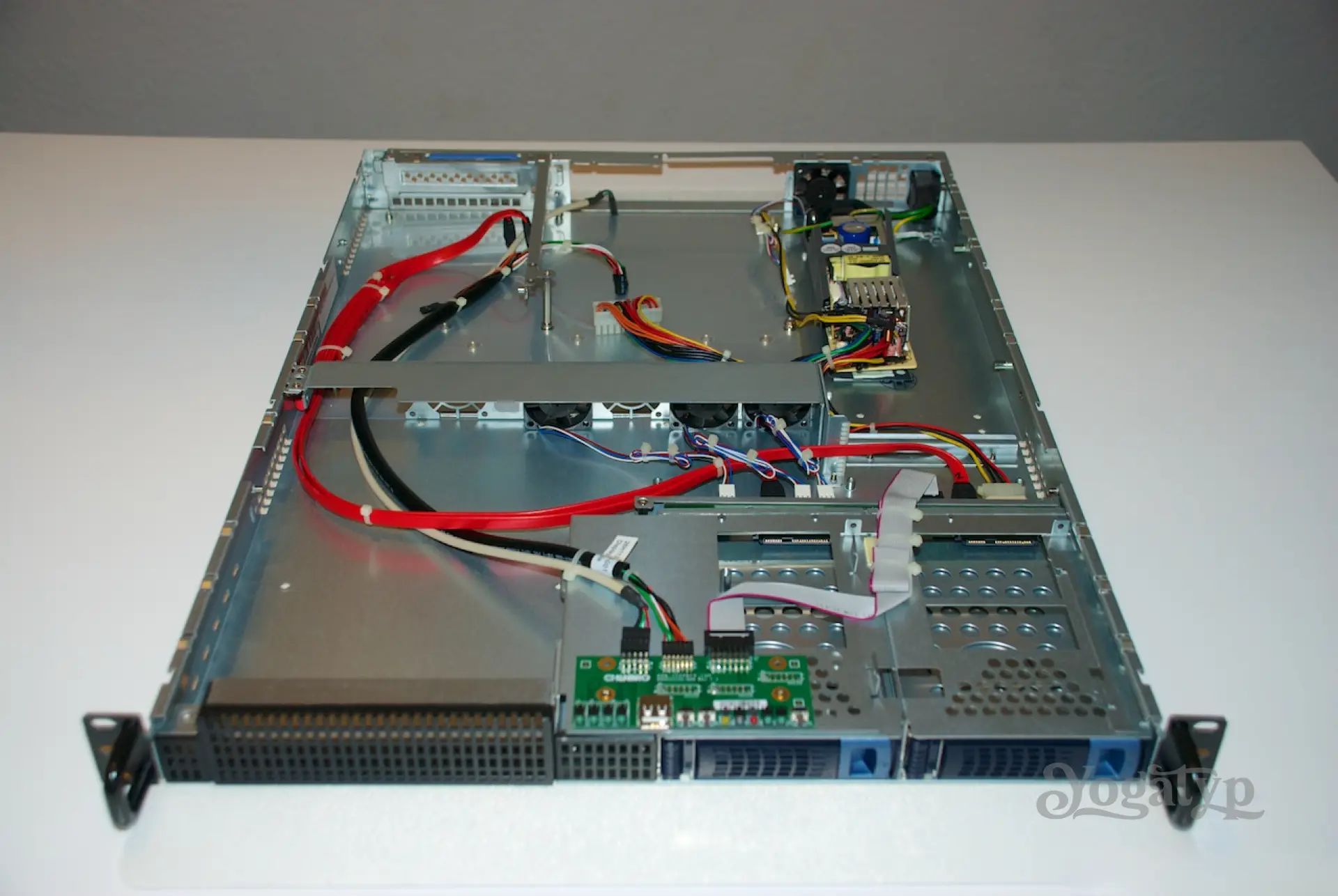 Das am 01. August 2003 von Chenbro in Taipei vorgestellte RM12402 mit lediglich einer Höheneinheit ist für den genannten Einsatzzweck geradezu prädestiniert. Damals von Chenbro für ATX Boards mit XEON vorgesehen, würden ich den Kasten eher für billige APUs hernehmen, also Intel Atom oder AMD E-350, E-450 oder E2-2000. Dazu dann noch 8 Gigabytes RAM rein. Im Gegensatz zum früher von mir vorgestellten RM214000 mit zwei Höheneinheiten und sechs 3,5″ Einschüben wartet das RM12402 mit lediglich 2 Slots auf.
